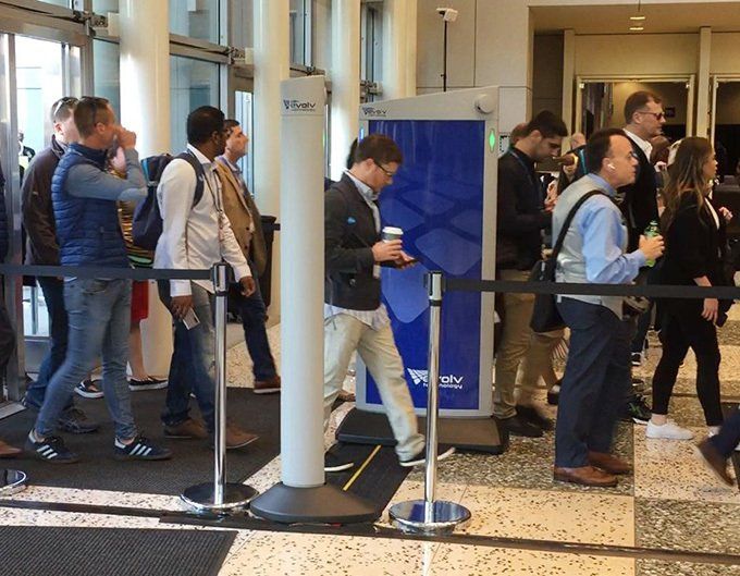 The system screens up to 3,600 people per hour (60 per minute), eliminating any bottlenecks at points of entry. Unlike legacy metal detectors, wands, and pat downs, the system can intelligently distinguish between threats and everyday items like a mobile phones, coins or keys.